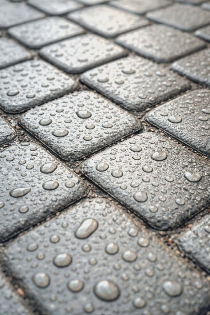 Dzięki aplikacji impregnatu hydrofobowego zapobiegamy wchłanianiu wilgoci, co znacząco ułatwia odśnieżanie i odladzanie kostki w warunkach ujemnej temperatury. Impregnat do kostki jest odporny na zmienne warunki pogodowe oraz znacząco ogranicza wpływ promieniowania UV na powierzchnię kostki, wydłużając tym samym jej trwałość.